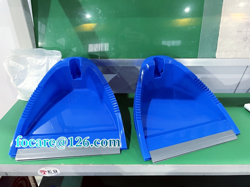 Two component dustpan or two color dustpan is made of bi material, PP plastic for the body and rubber material for the lip. Generally, the two component dustpan will be produced by overmolding, but because of low efficiency and high labor cost, we prefer to recommend our customers to use two component or two shot injection molding.